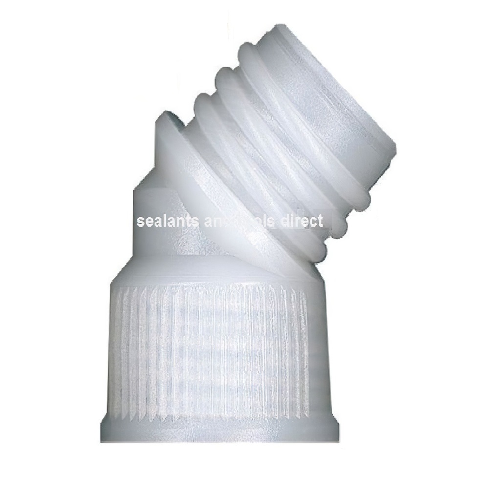 The 45 degree adapter fits standard silicone sealant nozzles and resealable nozzles